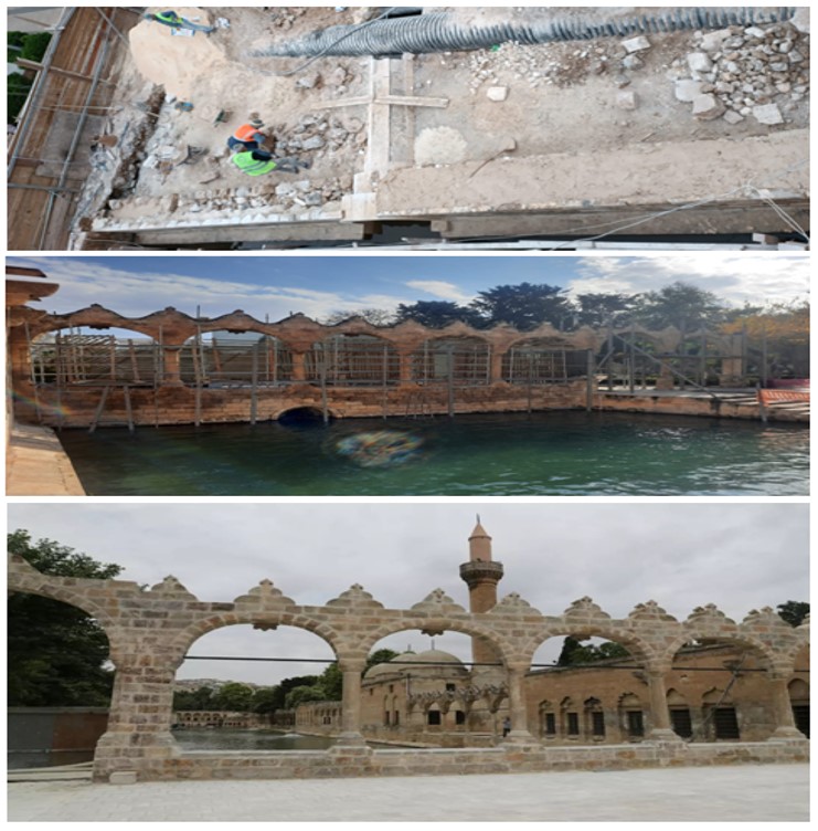 Şanlıurfa Valiliği Koordinasyonunda Vakfımız, Balıklıgöl’ün doğu kemerlerinin bulunduğu alanda ziyaretçilerin panoramik fotoğraf çekimlerinin yapıldığı platformda çökme ve çatlakların meydana geldiği zeminin etüt raporu ve zemine uygulanacak proje hazırlanarak Şanlıurfa Tabiat Varlıklarını Koruma Bölge Kurulu’na sunulmuştur. 06.07.2022 tarih ve 402 sayılı komisyon kararıyla projenin uygulama iznini aldıktan sonra Çevre Şehircilik Bakanlığımızın da mali desteğiyle Eyyübiye Belediyesi tarafından ihale yapılarak uygulama 10.05.2023 tarihinde tamamlanmıştır.